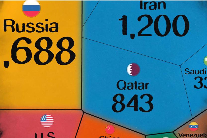 Rusia es la clara destacada, con dos veces más que Qatar y casi triplicando las reservas de Estados Unidos. La más cercana es Irán, otra potencia del petróleo.